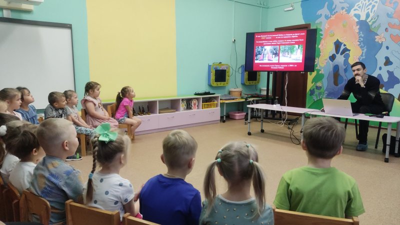 27 ноября для качественной реализации исследовательского проекта патриотической направленности детей 5-6 лет в стенах детского сада была организована встреча с сотрудником Ковровского музея «Ковров – город оружейной славы». Сотрудник музея - Котомин Михаил Владимирович провел виртуальную экскурсию, беседу с ребятами на тему «Ковров в годы ВОВ». Дети и педагоги получили ответы на свои вопросы и стали ближе к решению поставленных задач в рамках своего проекта.