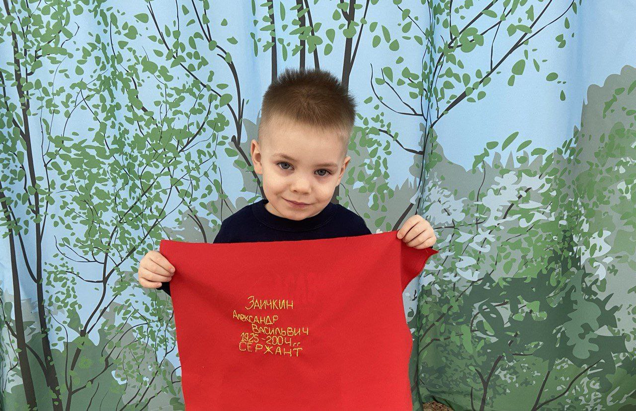 В Год Защитника Отечества в нашем детском саду большое внимание уделяется патриотическому воспитанию, развитию чувства сопричастности к истории Отечества, укреплению духовного единства российского народа. В настоящее время активно идет подготовка к патриотической акции среди дошкольных организаций города «Знамя Победителей», посвященной Победе в Великой Отечественной войне 1941-1945 гг. В акции принимают участие дети, педагоги и родители всех групп детского сада. Дети с родителями и педагогами своими руками на треугольниках вышивают информацию о своих родственниках - ветеранах ВОВ, воспитатель Надежда Валентиновна Николаева бережно оформляет композицию из треугольников на полотне, формируя «Знамя Победителей». Совсем скоро «Знамя Победителей» в течение апреля- мая месяцев будет располагаться в выставочном блоке детского сада, будет украшением и символом исторической памяти о героях ВОВ, Великой Победе!